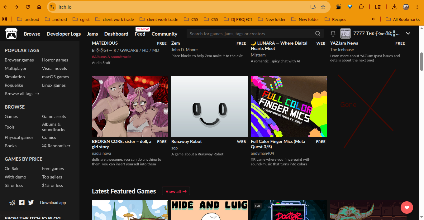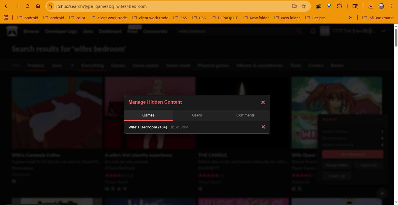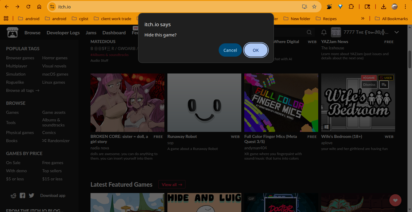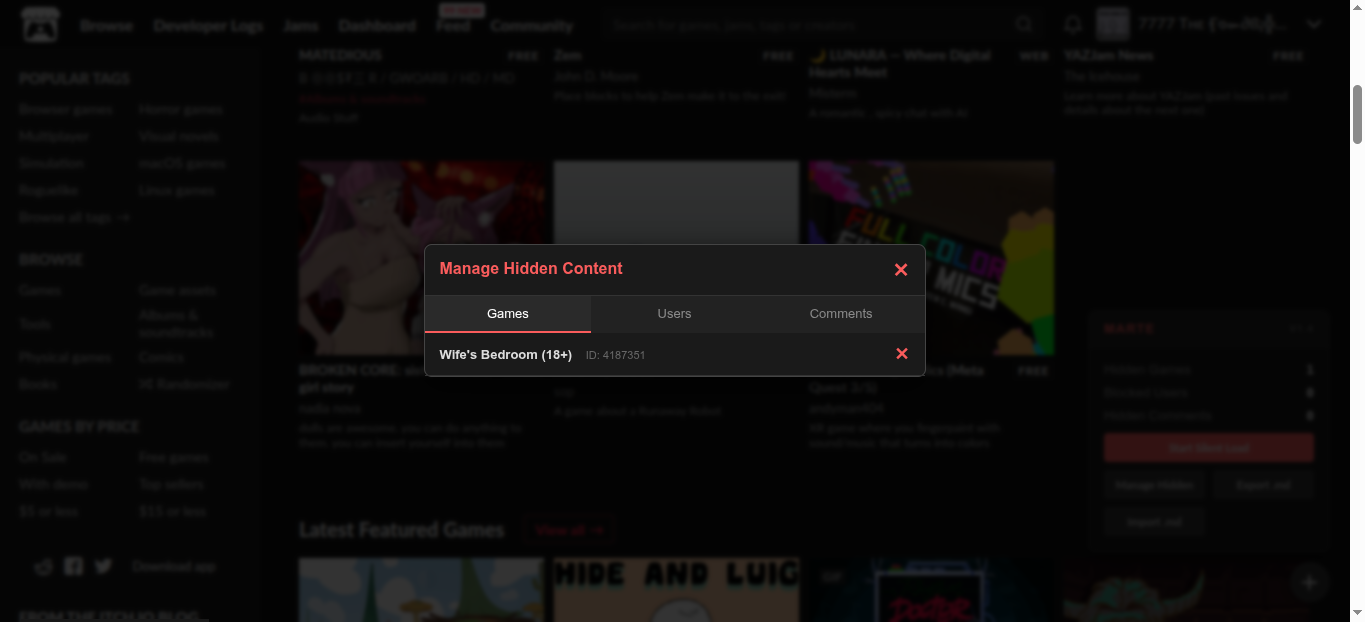 Control what you see on itch.io. Hide games, toxic comments, or block entire creators.